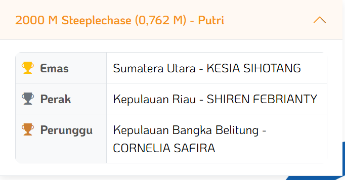 Detail Kemenangan: Perunggu Cabang Olahraga Steeplechase 2000M